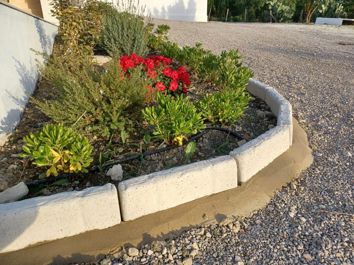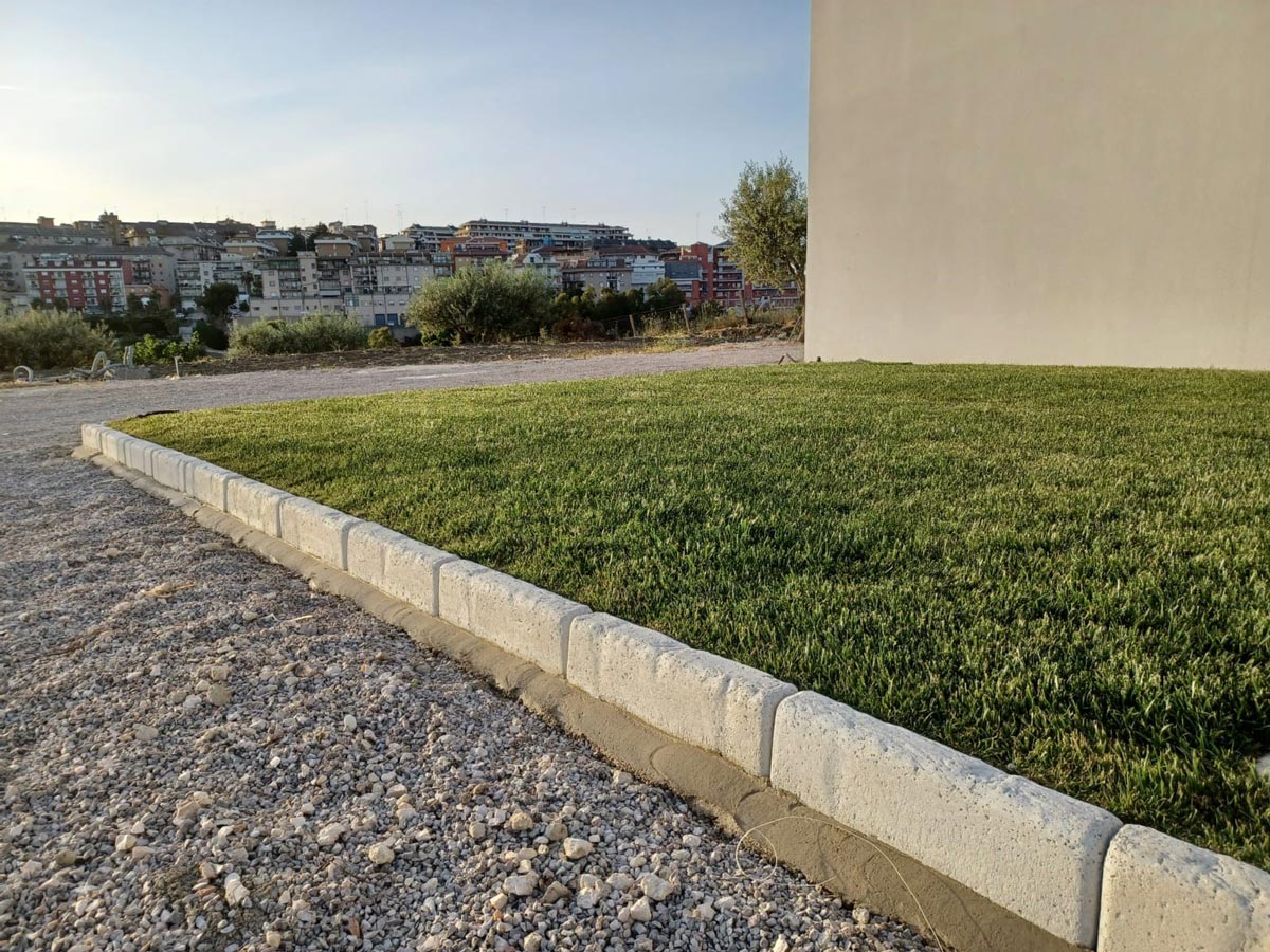 Questi cordoli in cemento – pietra ricostruita vengono prodotti artigianalmente e rifiniti a mano: ogni elemento è leggermente diverso dall’altro.